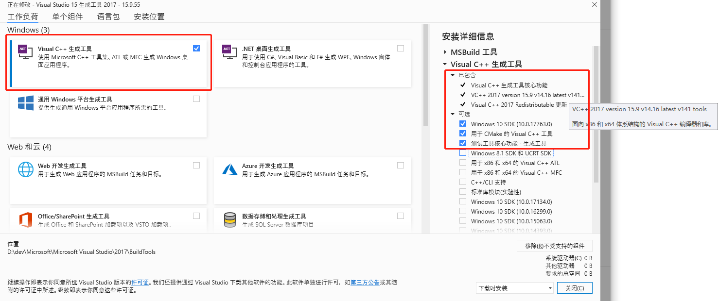 关于vs2017的安装不详细论述,安装参考下面的图即可。